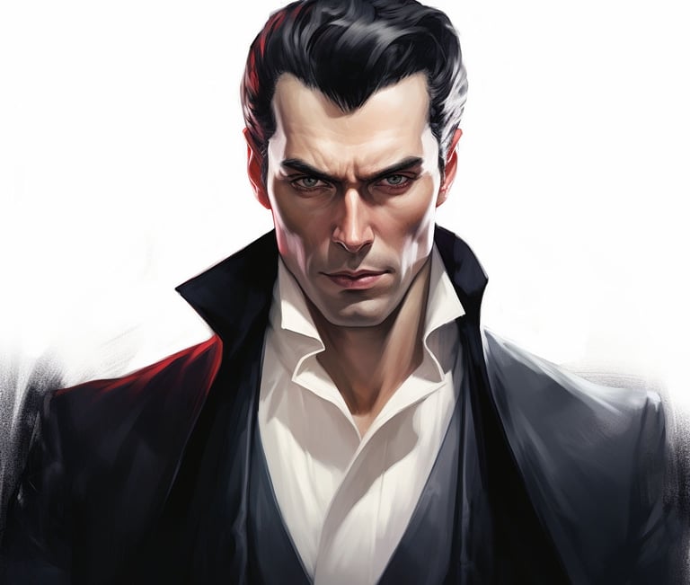 Count Dracula is the enigmatic and central antagonist of Bram Stoker's gothic horror novel Dracula. A Transylvanian nobleman, he is a centuries-old vampire who possesses unsettling charm and sophistication. With pale skin, sharp teeth, and a captivating yet fearsome presence, Dracula is a shape-shifter who can transform into a bat, wolf, and even mist. He feeds on the blood of the living to sustain his undead existence, and his bite can condemn the victim to a life of undeath as a vampire. As the novel progresses, Dracula's intention to move from Transylvania to England becomes evident, aiming to spread the vampire curse. While he possesses incredible strength and supernatural abilities, he is also constrained by specific limitations and vulnerabilities, like the inability to walk in daylight and a repulsion to garlic and crucifixes. Throughout the story, Dracula's malevolent intelligence and strategic cunning make him a formidable adversary. His character encapsulates the fears and anxieties of the Victorian era, representing both a seductive and corrupting force that challenges the novel's protagonists to their core.