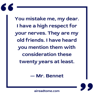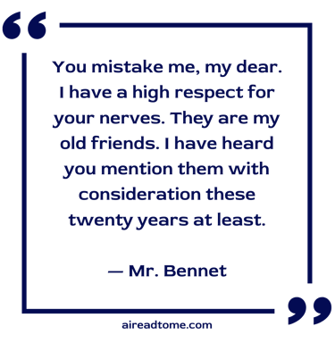 “Mr. Bennet, how can you abuse your own children in such a way? You take delight in vexing me. You have no compassion on my poor nerves.”