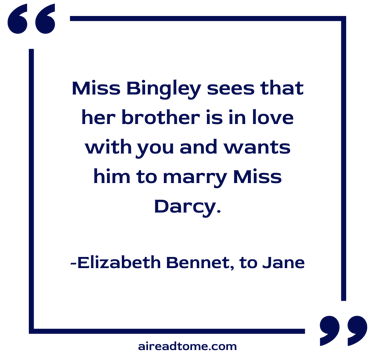 “You shall have it in a few words. Miss Bingley sees that her brother is in love with you and wants him to marry Miss Darcy. She follows him to town in the hope of keeping him there, and tries to persuade you that he does not care about you.”
