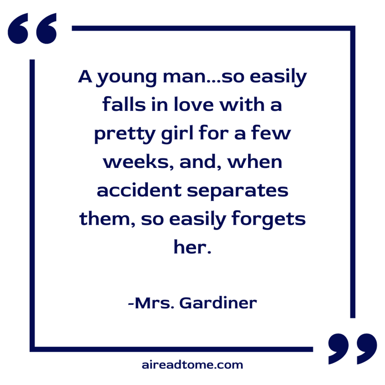 Mrs. Gardiner, to whom the chief of this news had been given before, in the course of Jane and Elizabeth’s correspondence with her, made her sister a slight answer, and, in compassion to her nieces, turned the conversation.