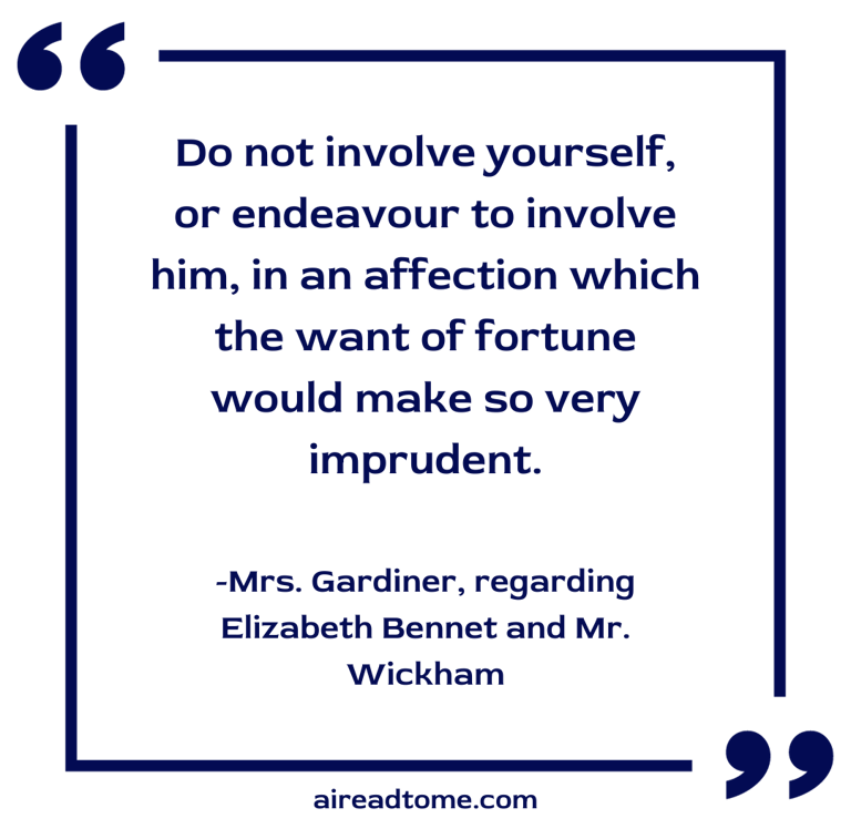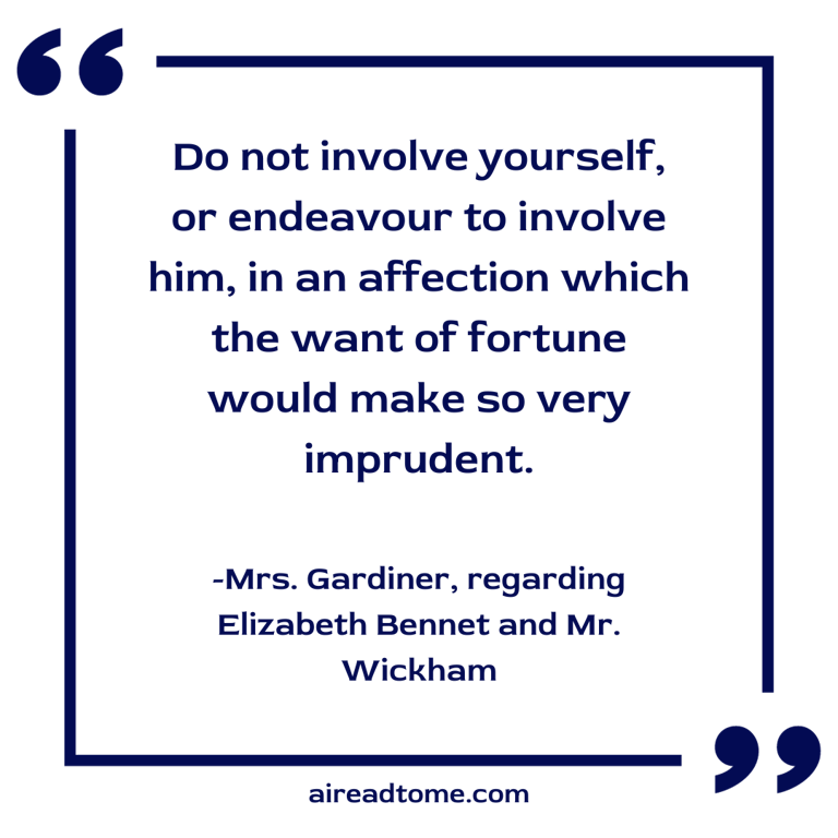 “You are too sensible a girl, Lizzy, to fall in love merely because you are warned against it; and, therefore, I am not afraid of speaking openly. Seriously, I would have you be on your guard. Do not involve yourself, or endeavour to involve him, in an affection which the want of fortune would make so very imprudent. I have nothing to say against him: he is a most interesting young man; and if he had the fortune he ought to have, I should think you could not do better.