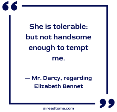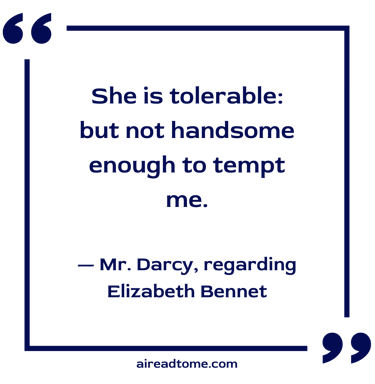 “Which do you mean?” and turning round, he looked for a moment at Elizabeth, till, catching her eye, he withdrew his own, and coldly said, “She is tolerable: but not handsome enough to tempt me; and I am in no humour at present to give consequence to young ladies who are slighted by other men. You had better return to your partner and enjoy her smiles, for you are wasting your time with me.”