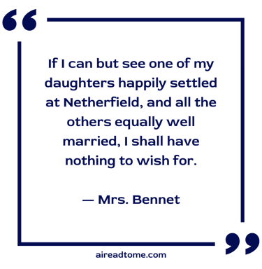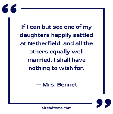 “If I can but see one of my daughters happily settled at Netherfield,” said Mrs. Bennet to her husband, “and all the others equally well married, I shall have nothing to wish for.”