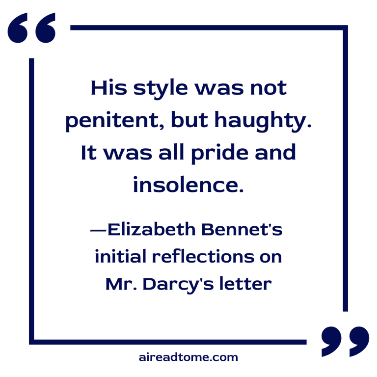If Elizabeth, when Mr. Darcy gave her the letter, did not expect it to contain a renewal of his offers, she had formed no expectation at all of its contents. But such as they were, it may be well supposed how eagerly she went through them, and what a contrariety of emotion they excited. Her feelings as she read were scarcely to be defined. With amazement did she first understand that he believed any apology to be in his power; and steadfastly was she persuaded, that he could have no explanation to give, which a just sense of shame would not conceal. With a strong prejudice against everything he might say, she began his account of what had happened at Netherfield. She read with an eagerness which hardly left her power of comprehension; and from impatience of knowing what the next sentence might bring, was incapable of attending to the sense of the one before her eyes. His belief of her sister’s insensibility she instantly resolved to be false; and his account of the real, the worst objections to the match, made her too angry to have any wish of doing him justice. He expressed no regret for what he had done which satisfied her; his style was not penitent, but haughty. It was all pride and insolence.