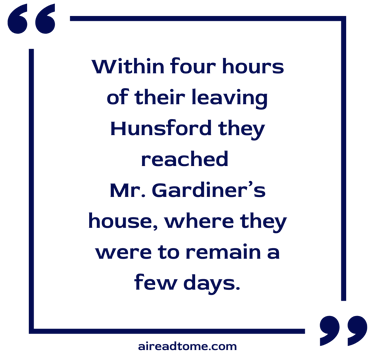 Their journey was performed without much conversation, or any alarm; and within four hours of their leaving Hunsford they reached Mr. Gardiner’s house, where they were to remain a few days.