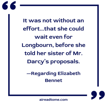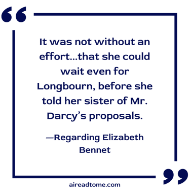 It was not without an effort, meanwhile, that she could wait even for Longbourn, before she told her sister of Mr. Darcy’s proposals.