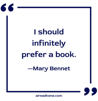 To this, Mary very gravely replied, “Far be it from me, my dear sister, to depreciate such pleasures. They would doubtless be congenial with the generality of female minds. But I confess they would have no charms for me. I should infinitely prefer a book.”