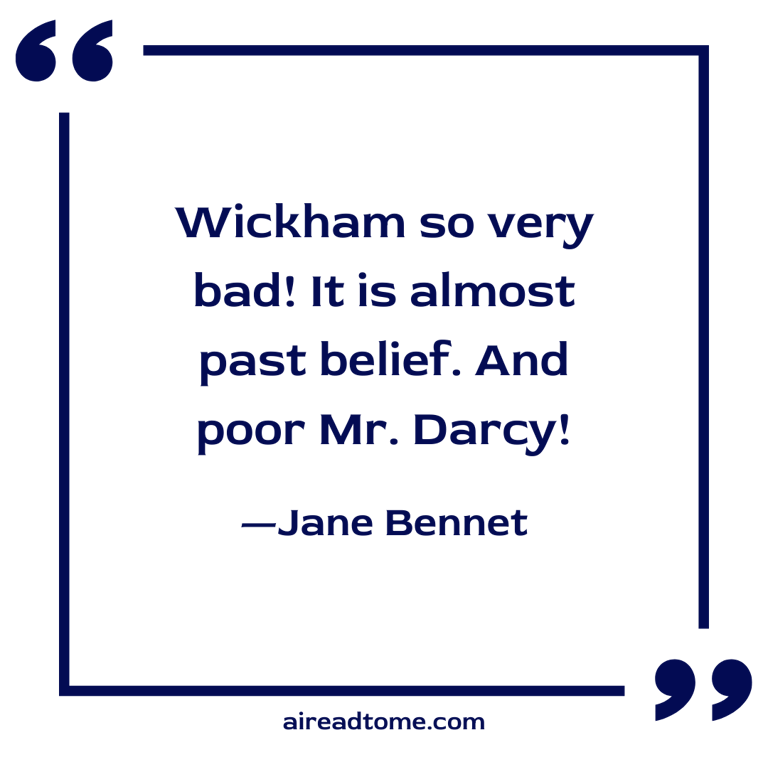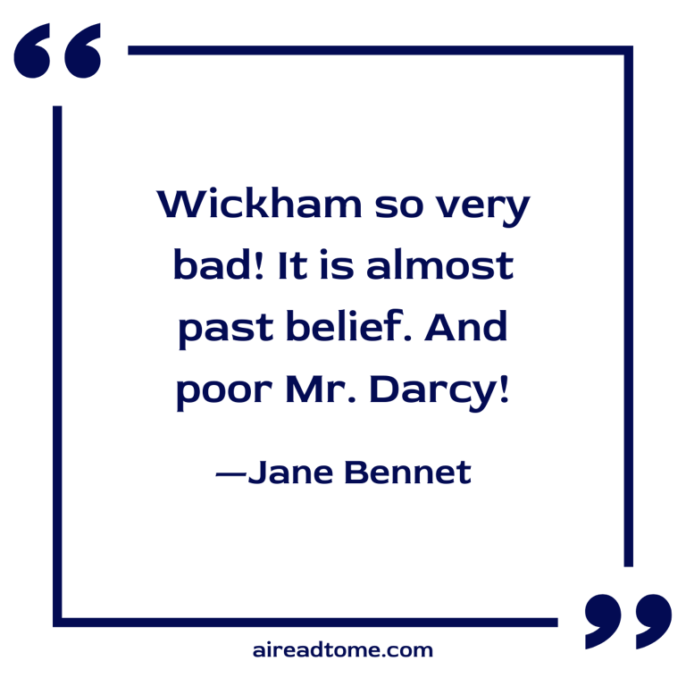 “How unfortunate that you should have used such very strong expressions in speaking of Wickham to Mr. Darcy, for now they do appear wholly undeserved.”