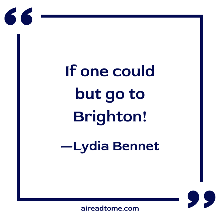 Had she known that her sister sought to tear her from such prospects and such realities as these, what would have been her sensations? They could have been understood only by her mother, who might have felt nearly the same. Lydia’s going to Brighton was all that consoled her for the melancholy conviction of her husband’s never intending to go there himself.