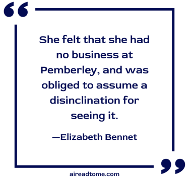 Elizabeth was distressed. She felt that she had no business at Pemberley, and was obliged to assume a disinclination for seeing it. She must own that she was tired of great houses: after going over so many, she really had no pleasure in fine carpets or satin curtains.