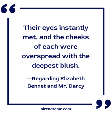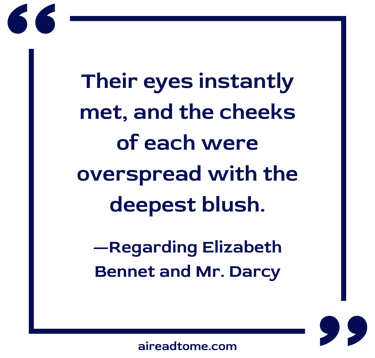 They were within twenty yards of each other; and so abrupt was his appearance, that it was impossible to avoid his sight. Their eyes instantly met, and the cheeks of each were overspread with the deepest blush. He absolutely started, and for a moment seemed immovable from surprise; but shortly recovering himself, advanced towards the party, and spoke to Elizabeth, if not in terms of perfect composure, at least of perfect civility.