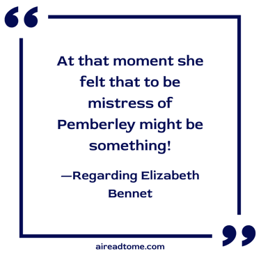 “And of this place,” thought she, “I might have been mistress! With these rooms I might have now been familiarly acquainted! Instead of viewing them as a stranger, I might have rejoiced in them as my own, and welcomed to them as visitors my uncle and aunt. But, no,” recollecting herself, “that could never be; my uncle and aunt would have been lost to me; I should not have been allowed to invite them.”