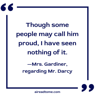 “There is something a little stately in him, to be sure,” replied her aunt; “but it is confined to his air, and is not unbecoming. I can now say with the housekeeper, that though some people may call him proud, I have seen nothing of it.”