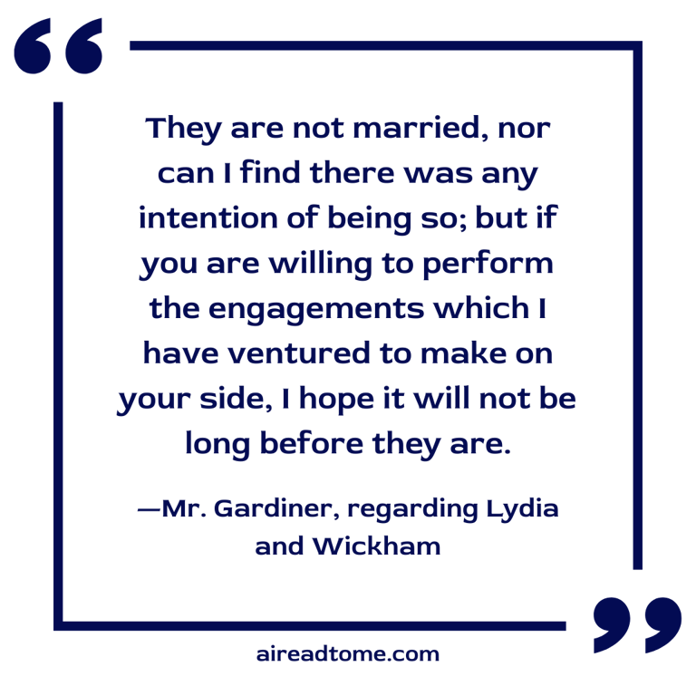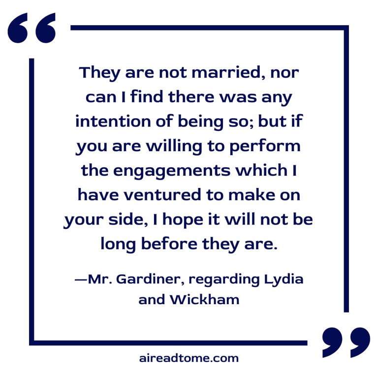 Elizabeth read on: “I have seen them both. They are not married, nor can I find there was any intention of being so; but if you are willing to perform the engagements which I have ventured to make on your side, I hope it will not be long before they are.