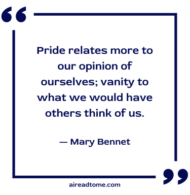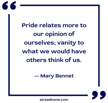 “Pride,” observed Mary, who piqued herself upon the solidity of her reflections, “is a very common failing, I believe. By all that I have ever read, I am convinced that it is very common indeed; that human nature is particularly prone to it, and that there are very few of us who do not cherish a feeling of self-complacency on the score of some quality or other, real or imaginary. Vanity and pride are different things, though the words are often used synonymously. A person may be proud without being vain. Pride relates more to our opinion of ourselves; vanity to what we would have others think of us.”