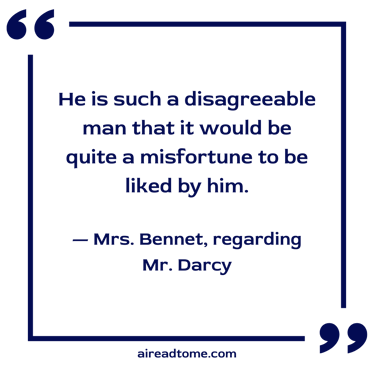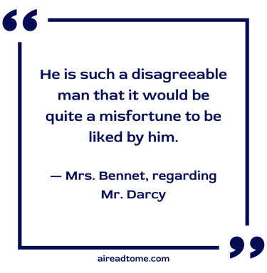 “I beg you will not put it into Lizzy’s head to be vexed by his ill-treatment, for he is such a disagreeable man that it would be quite a misfortune to be liked by him. Mrs. Long told me last night that he sat close to her for half an hour without once opening his lips.”
