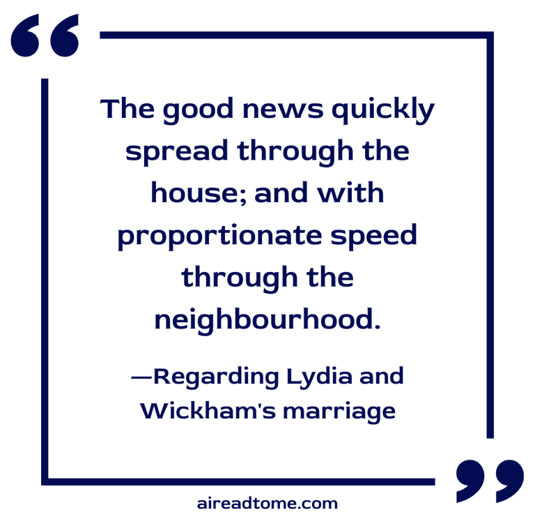It was borne in the latter with decent philosophy. To be sure, it would have been more for the advantage of conversation, had Miss Lydia Bennet come upon the town; or, as the happiest alternative, been secluded from the world in some distant farm-house. But there was much to be talked of, in marrying her; and the good-natured wishes for her well-doing, which had proceeded before from all the spiteful old ladies in Meryton, lost but little of their spirit in this change of circumstances, because with such a husband her misery was considered certain.