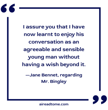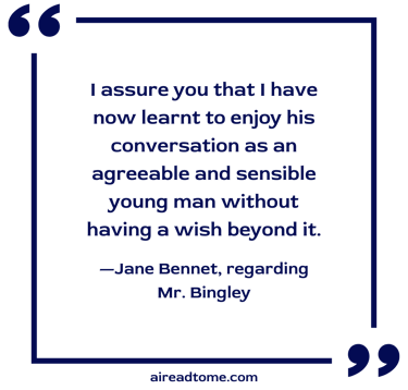 “Lizzy, you must not do so. You must not suspect me. It mortifies me. I assure you that I have now learnt to enjoy his conversation as an agreeable and sensible young man without having a wish beyond it. I am perfectly satisfied, from what his manners now are, that he never had any design of engaging my affection. It is only that he is blessed with greater sweetness of address, and a stronger desire of generally pleasing, than any other man.”