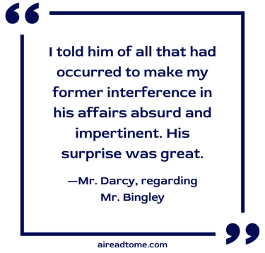 “What could have become of Mr. Bingley and Jane?” was a wonder which introduced the discussion of their affairs. Darcy was delighted with their engagement; his friend had given him the earliest information of it.