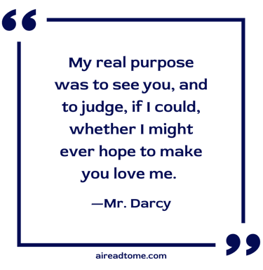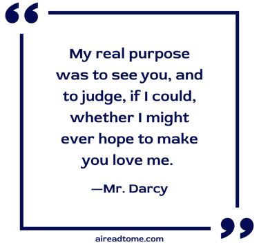 “My real purpose was to see you, and to judge, if I could, whether I might ever hope to make you love me. My avowed one, or what I avowed to myself, was to see whether your sister was still partial to Bingley, and if she were, to make the confession to him which I have since made.”