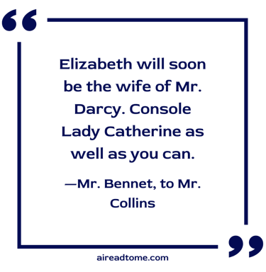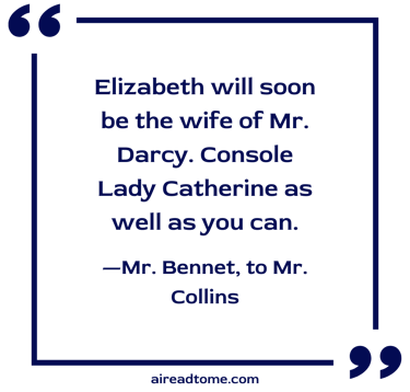 “I must trouble you once more for congratulations. Elizabeth will soon be the wife of Mr. Darcy. Console Lady Catherine as well as you can. But, if I were you, I would stand by the nephew. He has more to give.