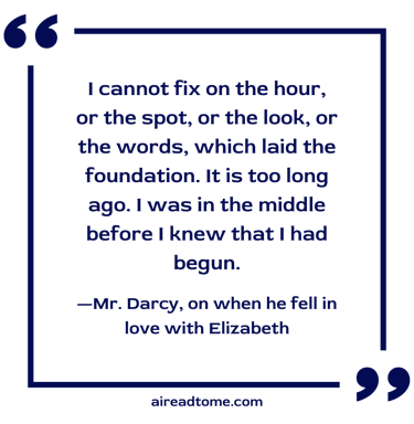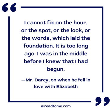 Elizabeth’s spirits soon rising to playfulness again, she wanted Mr. Darcy to account for his having ever fallen in love with her. “How could you begin?” said she. “I can comprehend your going on charmingly, when you had once made a beginning; but what could set you off in the first place?”