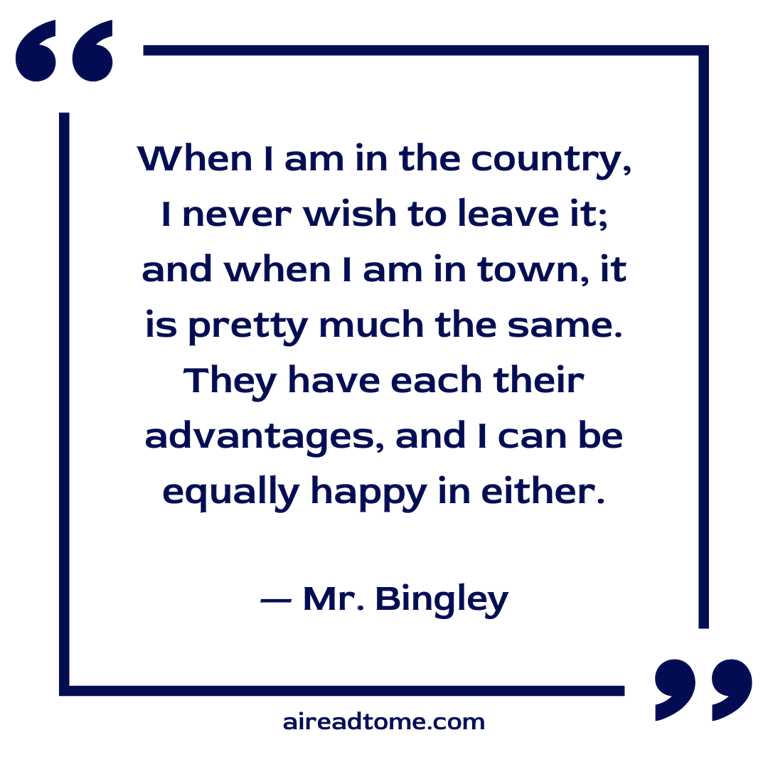 “I cannot see that London has any great advantage over the country, for my part, except the shops and public places. The country is a vast deal pleasanter, is not it, Mr. Bingley?”
